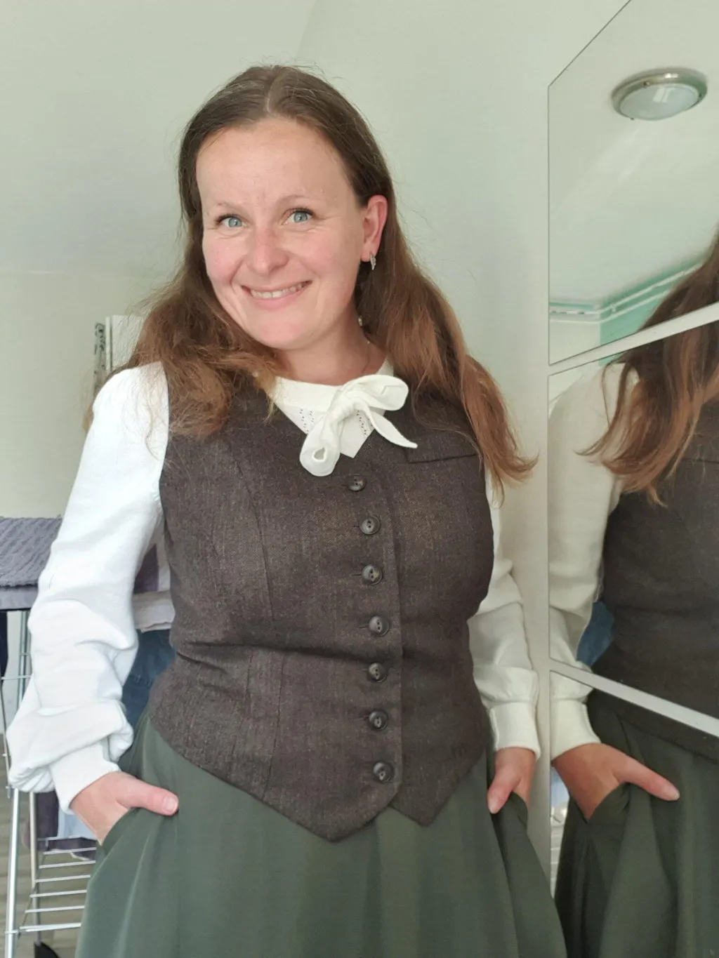 Mandy N (The Netherlands) Vandaag gepast in de winkel (supergezellig!). Voel me altijd zo welkom. Ik ben 1.47m en cupmaat E, normaal maat S of M, maar de waistcoats van Emmy Design vallen klein, dus ik heb maat 40 gekocht. Geweldige kwaliteit, glanst precies goed, zit heel fijn.