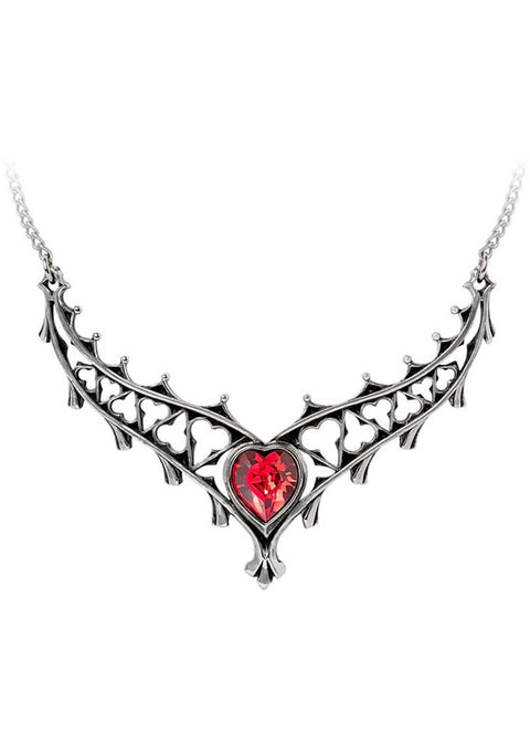 The Elizabethan necklace feels as though it has emerged from a Tudor hall: elegant, ornate, and designed to stand out. The intricately crafted heart-shaped details frame a deep red crystal heart that catches the light with every movement (and yes: it’s perfectly okay to be a little over-the-top)!